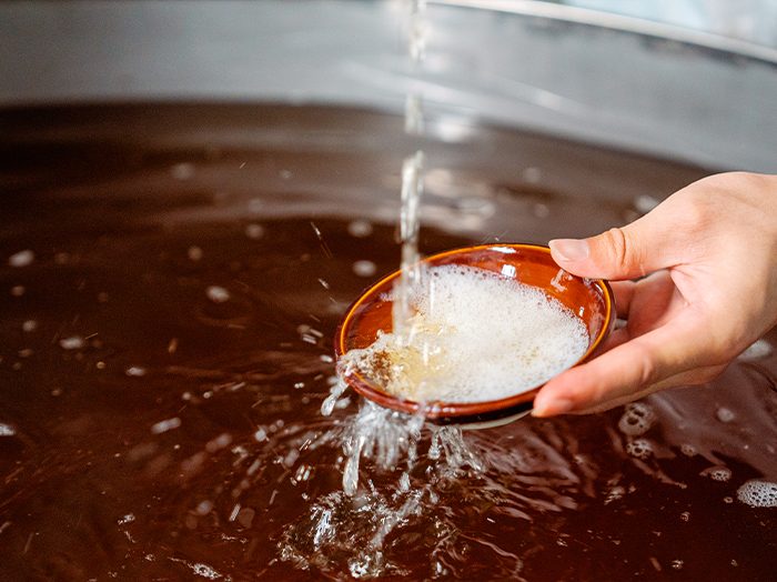 除了广为人知的佐蟹功能,黄酒本身也是一个丰富多彩的世界。根据含糖量,可分为干型、半干型、半甜型和甜型;其酒液中富含多种氨基酸、维生素和微量元素,适量饮用,温通气血,有益身心。温饮是经典的品饮方式,能将黄酒中的馥郁香气充分激发。